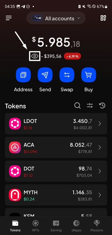 While hidden, you can still view your balances individually by tapping on the token you want to unveil.
