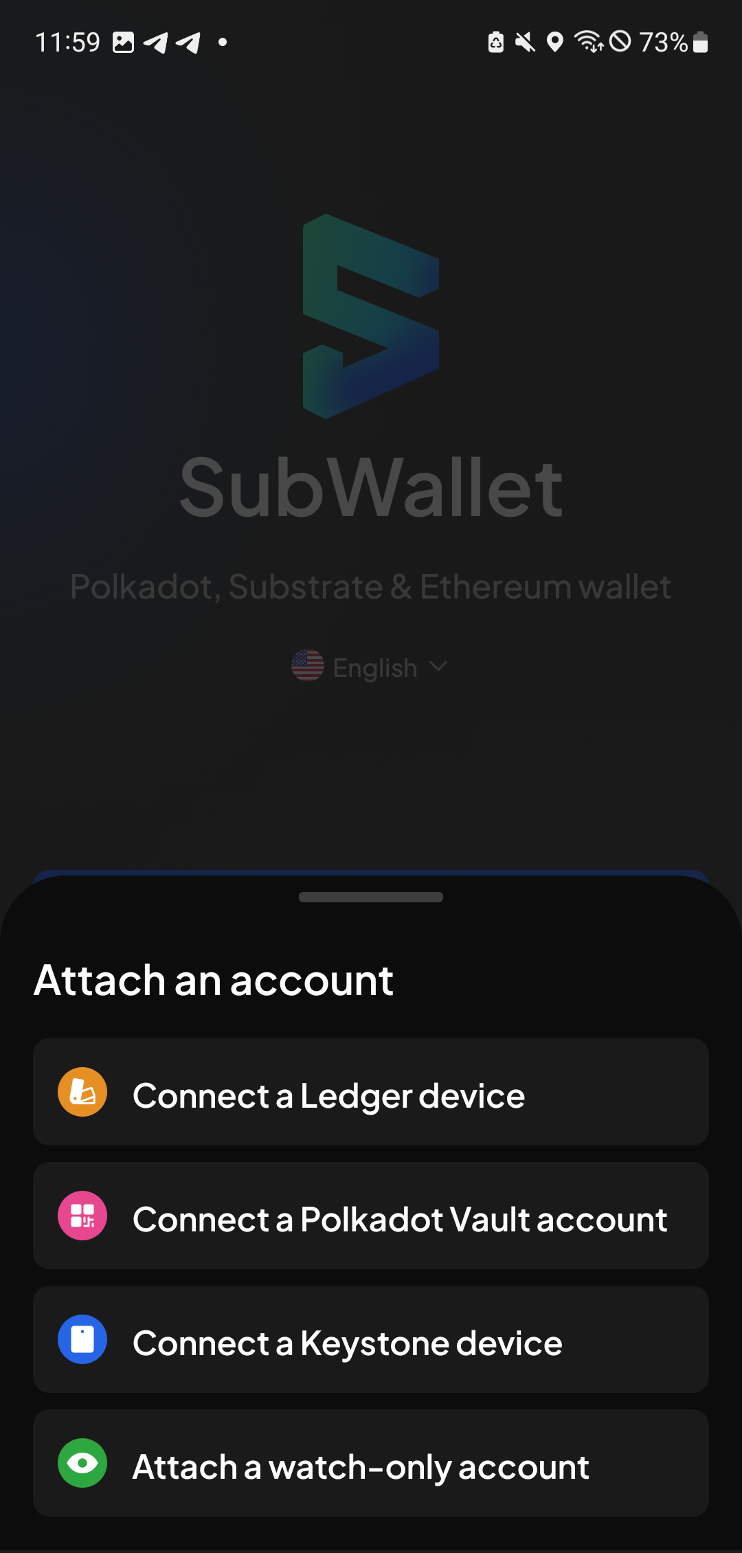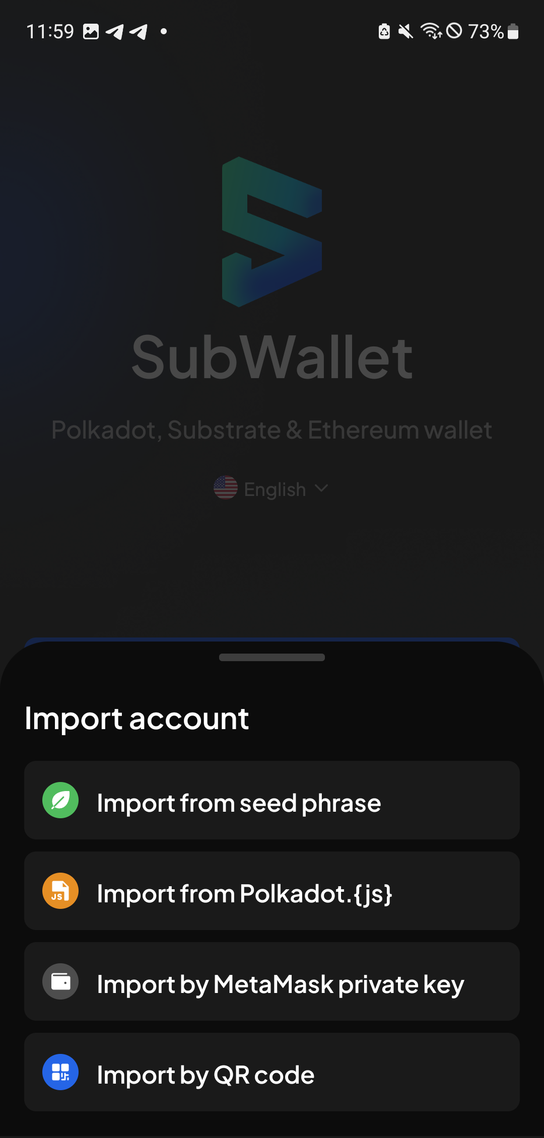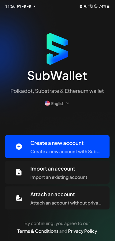**Step 1**: After installing SubWallet, open the app. On the Welcome screen, select your preferred option.