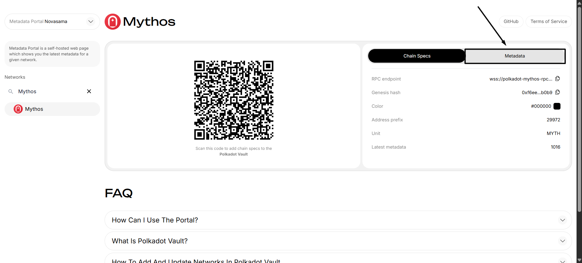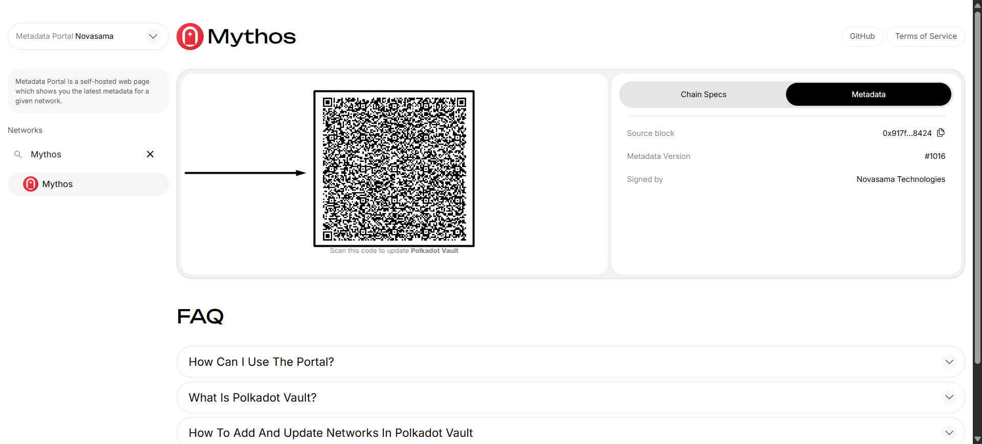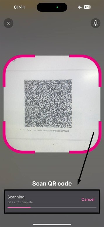 **Step 4**: Scan the Metadata Animated QR code using your Polkadot Vault device.